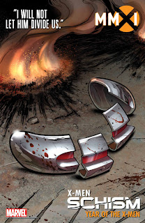 Mientras tanto, en Estados Unidos ya ha dado comienzo Schism (Cisma), el evento mutante de 2011 que promete, cómo no, cambiar a los mutantes tal y como los conocemos. El planteamiento es el siguiente: después del intento unificador que supone el santuario mutante de Cíclope en San Francisco llega la desunión a causa de diferentes maneras de entender la relación entre mutantes y humanos. Dos bandos, liderados por Cíclope y Lobezno (cual nuevos Xavier y Magneto). Una suerte de Civil War a lo mutante que nos deja imágenes tan sugerentes como ésta: